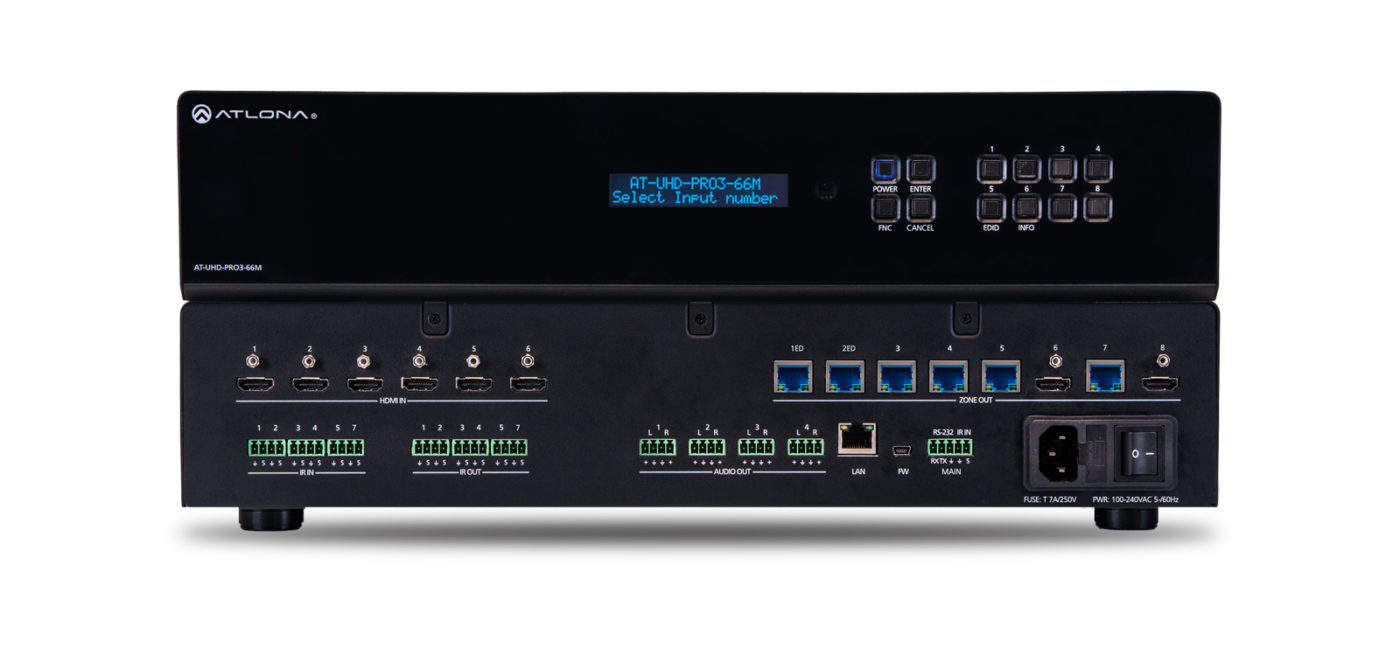 Six HDBaseTTM outputs with 330 foot (100 meter) and 230 foot (70 meter) transmission of HDMI, power, and control